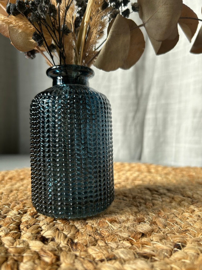 Glasvase in blau gepunktet